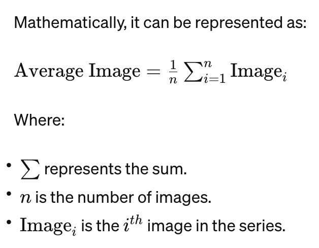 Modern cameras, especially smartphones, use computational photography to enhance image quality. Features like Night mode or Portrait mode leverage algorithms to process multiple images, enhancing details, and refining the outcome. For example, the Average Image Stacking Algorithm involves a simple mathematical operation, which is the calculation of the average pixel value for each pixel location in the final stacked image. The equation for this algorithm can be represented as follows: